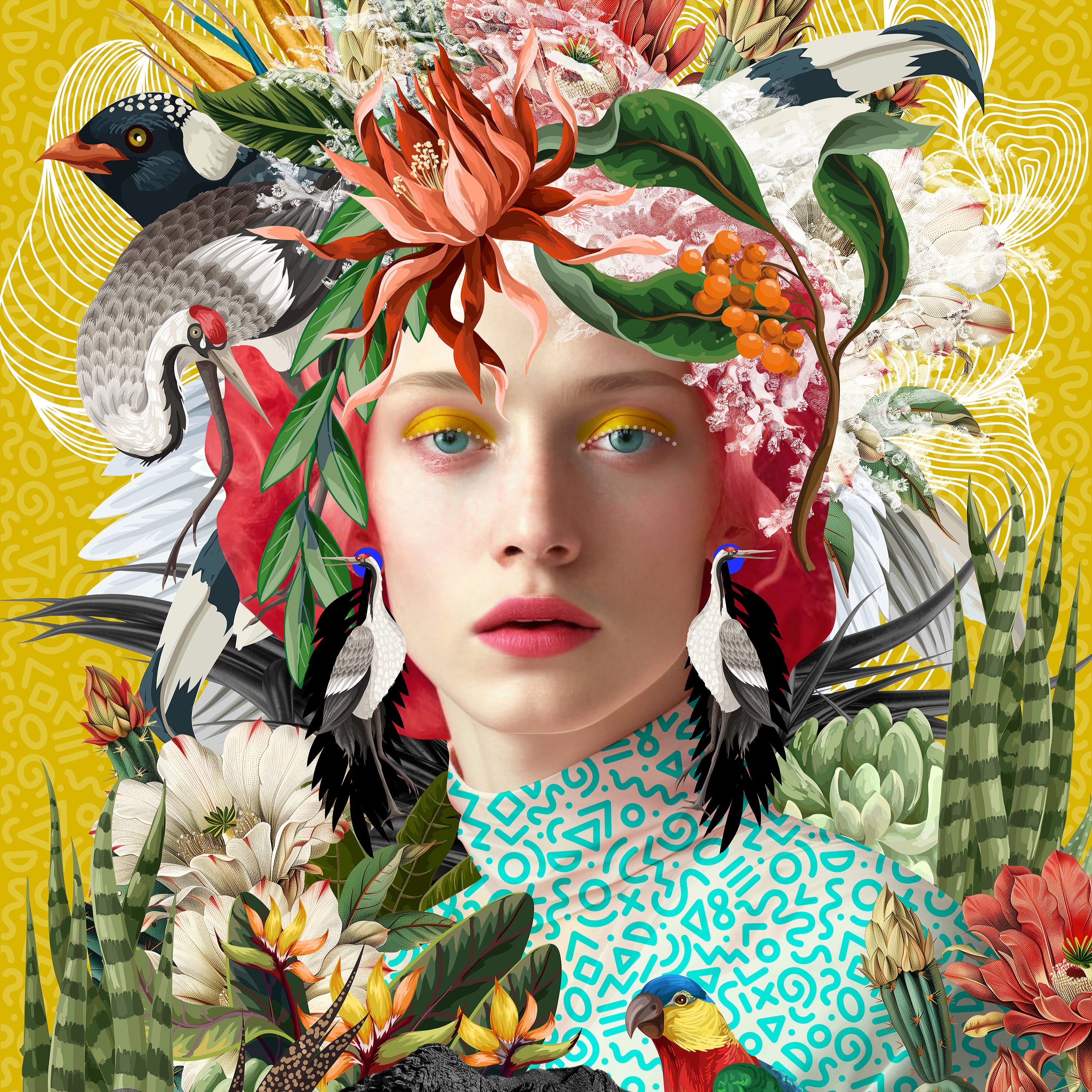 She sifts through 100’s of photographs from stock resources to find the right model and other elements for her artwork, The characters she chooses to use are ones that she feels drawn to, they exude a really cool attitude, like someone you’d love to meet down the pub. Dawn loves taking all these found images from one context and completely changing them and creating her own world.